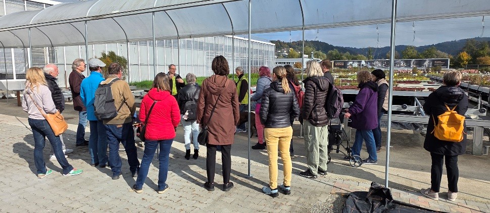 22 FRAGILE-Mitglieder sowie ein Begleithund nutzten die Gelegenheit, einmal hinter die Kulissen einer Grossgärtnerei zu schauen.