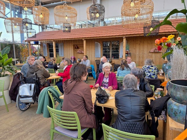 Bereichernd zu hören waren Geschichten wie die einer Frau, die nach dem Tod ihres Mannes im Winter jeden Tag einige Zeit in den Gewächshäusern verbrachte, um sich an der Blütenpracht zu erfreuen. Auch für einige unserer Mitglieder ist das Arbeiten im Blumengarten nicht mehr wegzudenken und wir sind dankbar, dass uns die Firma Huplant dort sponsert.