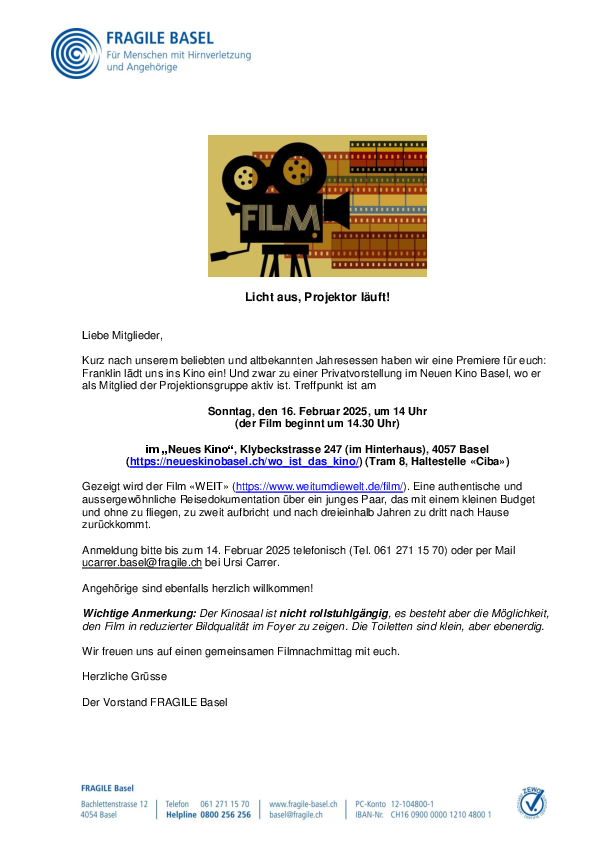 FRAGILE Basel (www.fragile.ch/basel) ist eine von 11 Regionalvereinigungen der Dachorganisation FRAGILE Suisse, Schweizerische Vereinigung für Menschen mit Hirnverletzungen und deren Angehörigen. In Zusammenarbeit mit Fachpersonen unterstützen wir…