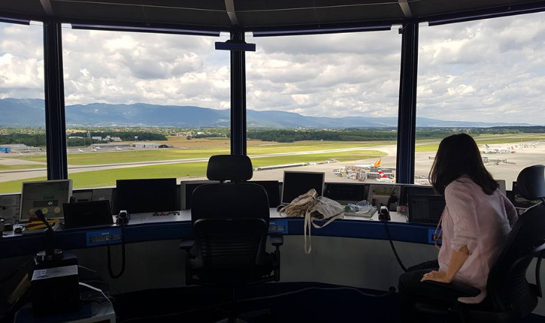 Nous sommes tout d’abord installés dans la salle de formation où l’historique de l’entreprise nous est présenté. Née en 1922, elle se prénomme alors Radio Marconi, puis change de nom pour Radio-Suisse SA en 1928 et Swisscontrol en 1988. Deux dates importantes marquent l’entreprise : 2001 où l’aviation civile et militaire ont fusionné pour des raisons de fluidité et d’espace aérien ; et 2002 suite à l’accident aérien d’Überlingen où deux avions entrent en collision au-dessus du lac de Constance, tuant les 71 passagers à bord des appareils. Cet événement a entraîné le changement de multiples procédures aéronautiques internationales.