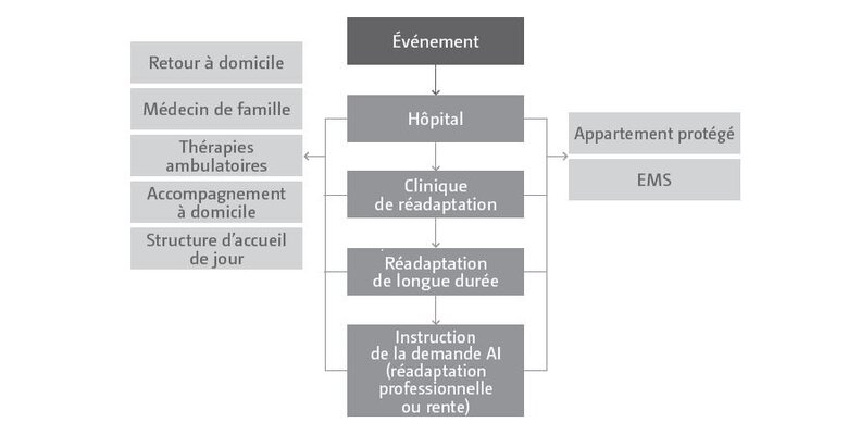 Vous trouverez ci-dessous un aperçu par étapes les formes de prises en charge possibles après une lésion cérébrale: