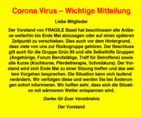 Corona Virus – Wichtige Mitteilung