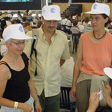 Mitarbeitende und Mitglieder von FRAGILE Suisse demonstrierten am 26. April 2003 gemeinsam mit 4'500 anderen Personen auf dem Bundesplatz in Bern. Gemeinsam forderten wir ein Ja zur Behinderteninitiative und somit gleiche Rechte für Menschen mit Behinderung.